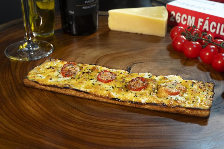 Surpreendente não só pelo seu formato, retangular, mas pela combinação leve de sua massa com Farinha Orgânica Mirella e fermentação natural de 24 horas + deliciosas combinações de sabores para agradar o paladar brasileiro.