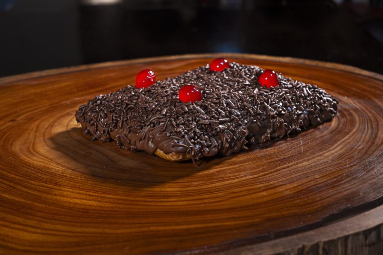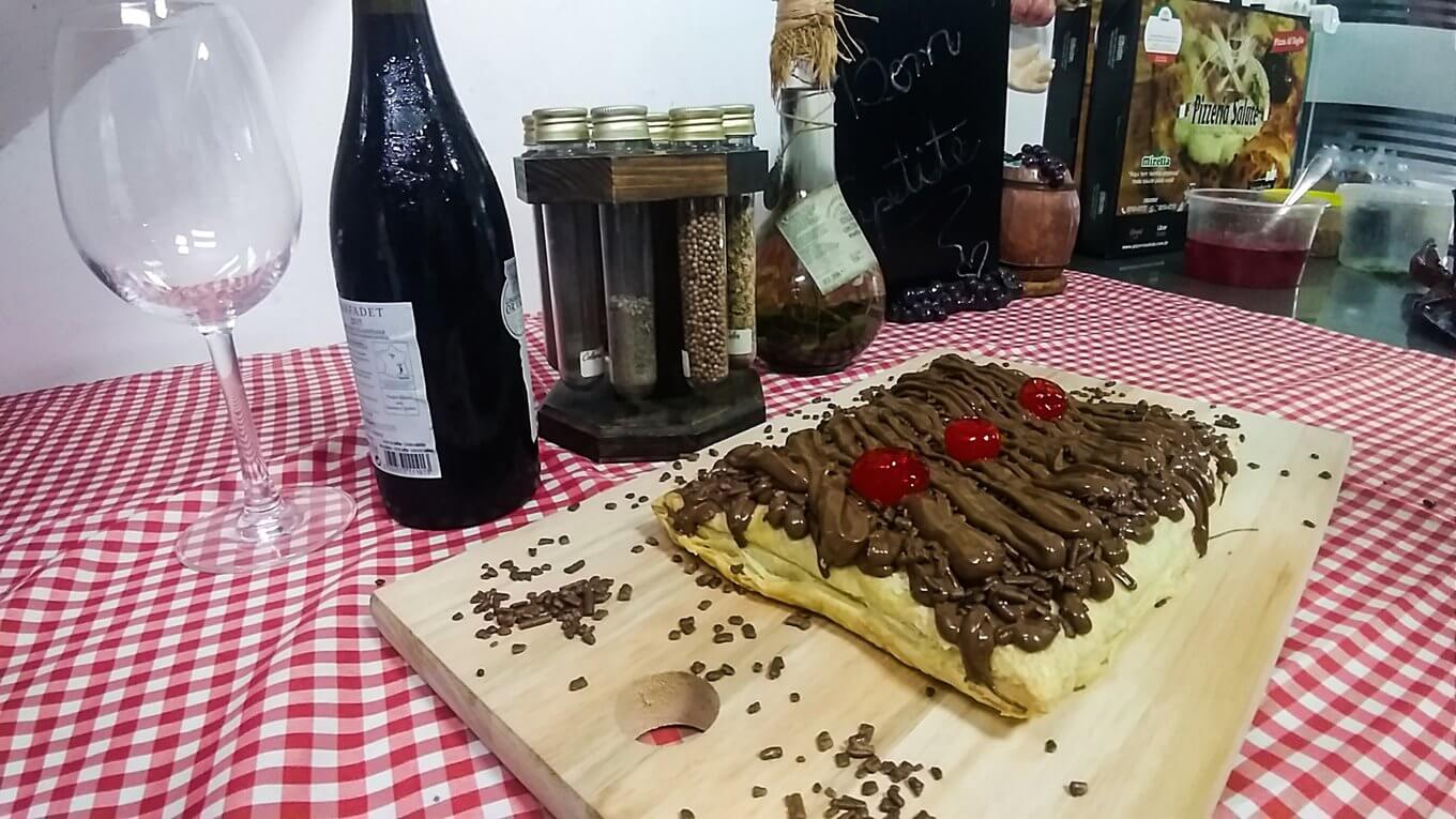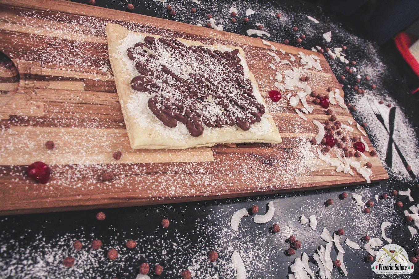 Massa Folhada com Chocolate Avelã, Granulado e Cereja Marroquina.