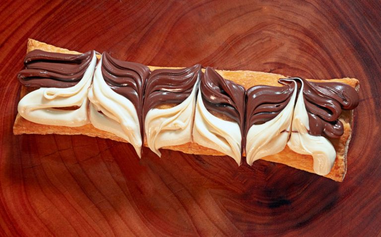 Massa Folhada com Chocolate ao Leite e Chocolate Branco.