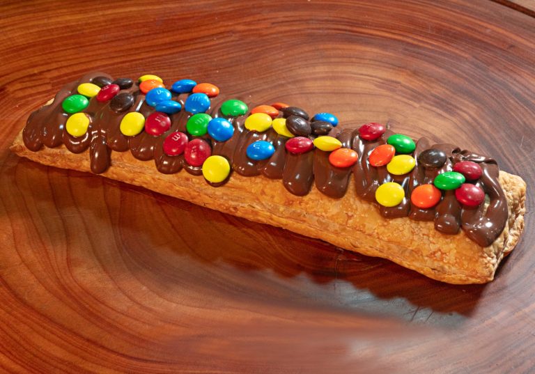 Massa Folhada com Chocolate ao Leite e Deliciosos M&M’s por cima.