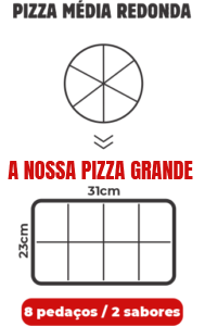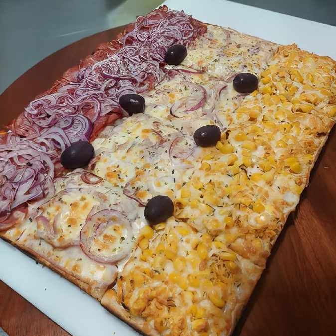 Agora você pode pedir nossa deliciosa pizza quadrada com 3 sabores deliciosos, e sabe o melhor? Estão em promoção por um preço imperdível!