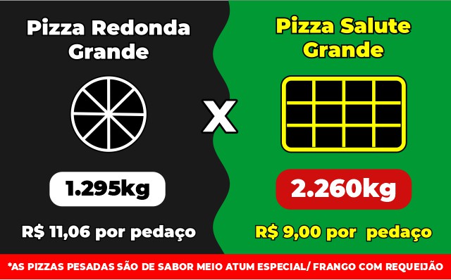 A Pizzaria Salute traz para você, a famosa pizza Al Taglio, considerada a melhor pizza da Itália em muitas regiões!